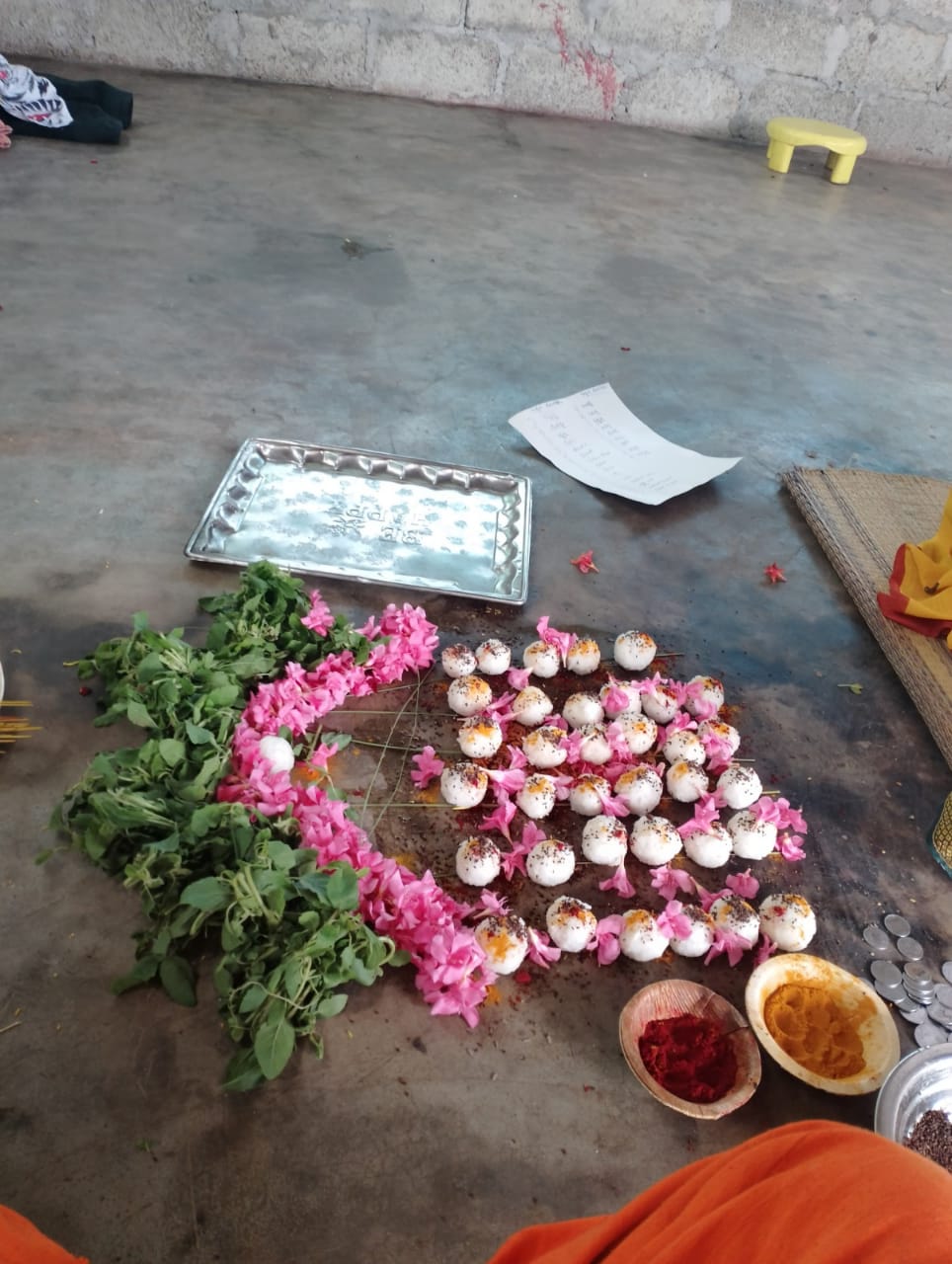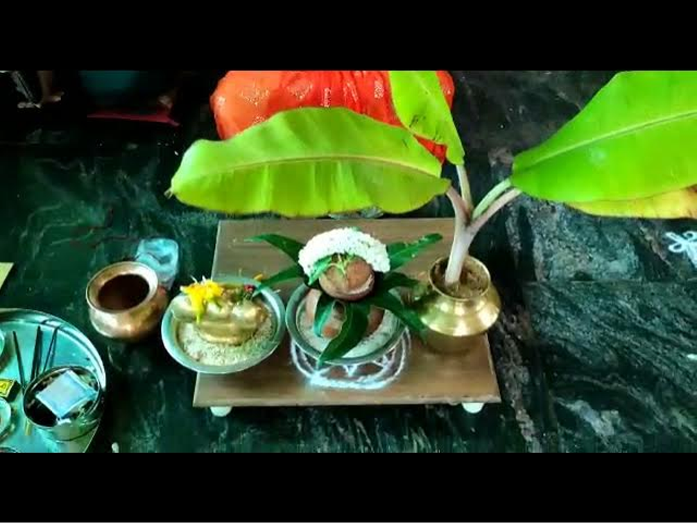 In this ritual, the first bride is married with an idol of Lord Vishnu set in an earthen pot.